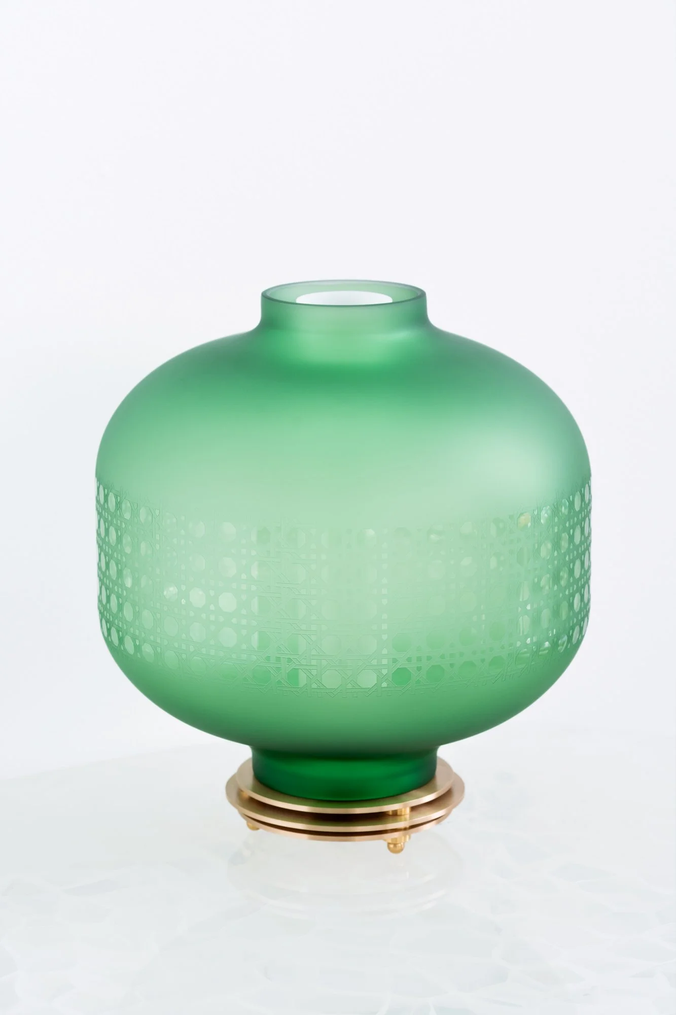 Each lantern is a meticulously crafted work of art, featuring handblown glass that is double sandblasted to create delicate lattice and woven patterns. Paired with a simple brass base, these lanterns produce a warm, resonant light that transforms any space with a quiet yet profound elegance.